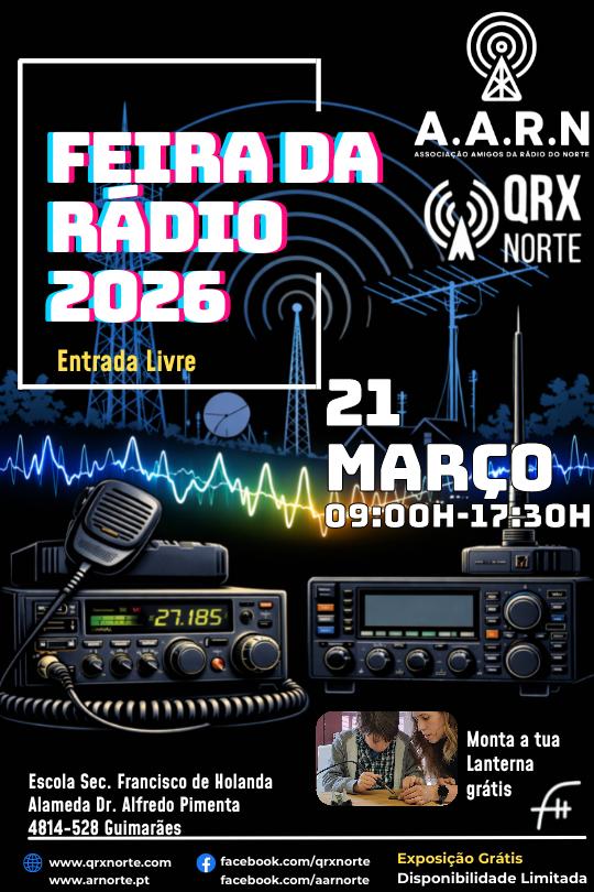 O QRXNorte tem o prazer de o convidar para fazer parte do nosso próximo evento, "Feira Rádio QRXNorte/AARN 2026", (que este ano se associou à A.A.R.N para o evento).